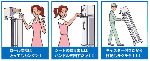 工場や配送現場の防虫対策に! ●業界初のロール巻き取り方式 ●メーカー独自開発による強力な特殊粘着剤を使用 ●転倒防止機能など、安全性にも十分配慮した設計 |