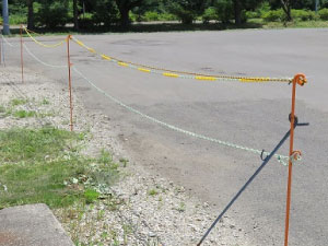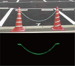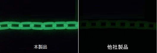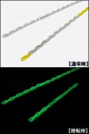 『立入禁止』『迷惑駐車』『外構の侵入防止』など、夜間や暗所でも光り危険を喚起する蓄光チェーンです。 | 安全高輝度プラスチックチェーン 品番 M944T-25MG 価格は下記をご覧下さい |