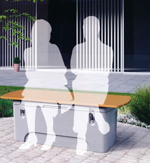 普段はベンチや景観グッズとして使用する事が出来、緊急時でも落ち着いて防災用品を使用出来ます。