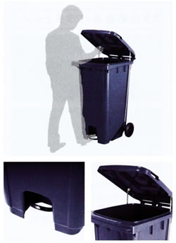 足ペダル式なのでワンタッチで開け閉めができます。 | 足踏み式大型ゴミ箱カート 品番 MB21TP-120K 価格は下記をご覧下さい |