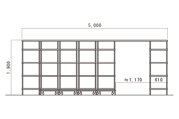 | ■特徴 ●基礎工事をはぶき、設置を容易に出来る様設計された省スペースの手動式移動スチールラックです ●限られたスペースを有効に利用したい時に。設置も容易な最適シェルフ。 ●床面無軌条(レールレス)で床面に段差がなく、つまづく心配がありません。台車・カートの出し入れも容易です。 ●ステンレス製はこちら→MB35RS4-23SUSシリーズ ■どんなスペース・環境にもぴったり合わせます。 設置するスペースに合わせて全長・奥行・高さの変更が可能です。 また、積載するものに合わせて棚板数(棚間隔)・棚板の仕様の変更も可能です。 その他、棚板への落下防止対策、壁面・床面固定用金具もご用意できます。 冷凍・冷蔵・恒温・恒湿・静電気対策等、特殊環境に合わせた材質選定もお任せください。 ■使用例 恒温・恒湿庫内、研究施設、工場、厨房、各種倉庫、食品工業、冷凍・冷蔵庫内、等 ■外形図