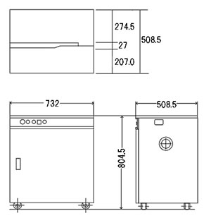 | ■特徴 1 ステンレス製の半自動梱包機です。 ・塗装機に比べて、錆びない、塗装が剥がれない。 ・いつまでも清潔に使用できる。 ・本体底部にもステンレスを張っているので、バンドが垂れて水気を拾う事がないので機械内部も錆にくい。 ・食品関係・水産関係・スーパー・量販店等に適しています。 2 コンパクトサイズ ・全体的にコンパクトですので狭い場所でも使用も可能です。 3 ウォームアップ15秒 ・スイッチを入れると、約15秒で作業が出来ます 4 バンド量調整 バンドの送り出しは量はダイヤルを回せば自由に調節出来ます。 5 切断方式 ・切断はシャーリング方式を採用していますので長持ちします。 6 引締調整 ・バンドの引き締め力の加減は、外部ダイヤルで無段階にコントロール出来ます。 7 温度調整 ・ヒータの温度調整は不要です。 8 バンド交換 ・使用バンドを変える場合はガイド調節でOKです。 ■機械寸法 ![]() ■仕様
