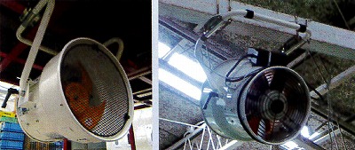 ■特長 ●角度調節可能のアングルタイプ 床置き、天吊り使用時共に 上下に角度調節が可能! 工具を使わずに対象に送風できます。 ●工場内の梁などを利用し、天井吊り下げタイプとして設置可能 省スペースで送風、循環に使用可能です。