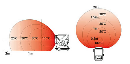 ●1.8L/h、1.4L/hの強弱2段燃焼 弱燃焼で8時間稼働した場合、1日当り3.2L(320円)の節約ができます。 ※メーカー従来機比(従来機は1.8L/hのみ)1L100円の場合。 ●3段積み機能ですっきり収納 コンパクトで段積み可能。ハンドルが折りたたみ式なのでスッキリ収納できます。 ![]() ●16時間連続燃焼可能(弱燃焼時) ●瞬時消臭システム搭載 消火時、配管の中の灯油を瞬時にタンクに戻すので、消火時のニオイが低減されています。 ●大きなハンドルで楽に移動 長めのハンドル、大きめのキャスターで、段差なら楽に移動できます。 ![]() ■温度分布図(上昇温度0℃基準) ![]() ■主な用途 工場、倉庫、体育館、イベント、スポーツ会場など屋内外の暖房 ■寸法図(単位mm) ![]() ■仕様