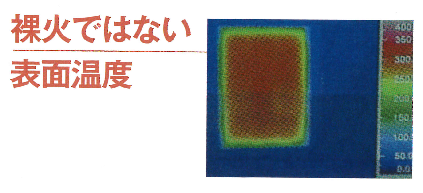 発熱部表面温度は、裸火ではない400℃未満で火災の危険性はすくなくなります。