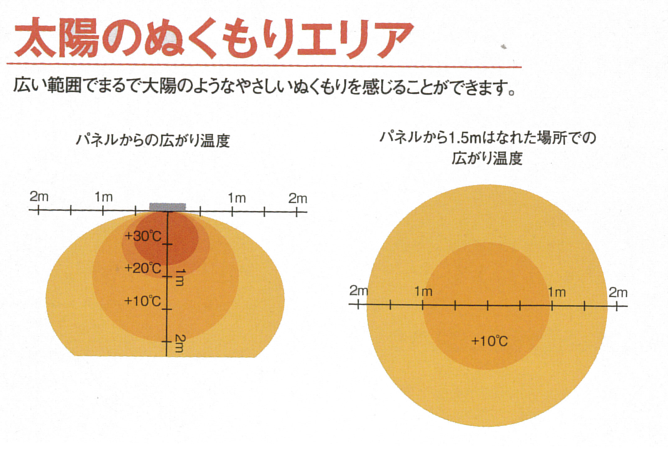 広範囲を温め、まるで太陽のようなぬくもりを感じることができます