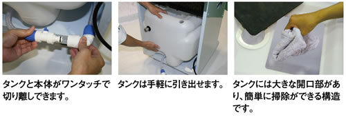 | ■体感温度を大きく下げるエコな冷風機 熱中症対策として風に当たることは、有効な手段の1つです。 MC35SFシリーズは、周囲温度より5℃低い涼風を、メーカーならではの強い風速で、より遠くまで送ります。 また、水の気化熱を利用しているので、消費電力もCO2も大幅に削減でき、地球環境に配慮した製品です。 ■特長 ●涼しさを、より強く、より広く、より遠くに。 従来よりも幅広い範囲への送風が可能になりました。 ・上下左右にオートスイング(MC35SF-701K・505K) ![]() ・選べる風量 好みに応じて強中弱の風量を選択できます。 ![]() ●ラクラクメンテで、いつも清潔。 ・MC35SFシリーズは、簡単に掃除ができる構造です。 タンク内の水は必ず汚れてきます。タンクの掃除が必要になります。 ![]() ・冷却エレメント交換が簡単。 冷風性能、清潔さを保つため、定期的な冷却エレメント交換が必要です。