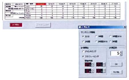 ■専用自動計測アプリケーション/品番 MC5HV-1000J-SOFT MC5HV-1000Jと専用自動計測アプリケーションを組み合わせれば自動連続測定が可能になります。 ●特長 ・ボタン1つで簡単操作 MC5HV-1000JとMC5HV-1000J専用自動計測アプリケーションをインストールしたPCを接続し、 【計測開始】を押すだけで誰でも簡単に測定が出来ます。 ![]() ・リアルタイムでクロマトグラム表示と記録が可能 測定を開始してからリアルタイムでクロマトグラムを描画するため、確認しながらの測定が可能です。 これにより測定可能物質以外の物質も確認することが出来ます。 ![]() ・クロマトグラムデータより個別の成分ピークの算出が可能 計測データ読取後には、スペクトラム分析をクリックすることで クロマトグラムデータを個別の波形グラフに分解する事が出来ます。 これによって干渉ガスの影響が軽減されます。また、測定項目以外の物質も読み取る事が可能です。 ![]() ・計測回数、サンプリング間隔を設定可能なため、連続測定が可能 計測回数(最大99回)、サンプリング間隔(30分、1時間、1時間30分、2時間、2時間30分、3時間)を変更可能なので、 24時間モニタリング、減少効果等のモニタリングに適しています。 ![]() ●仕様