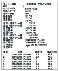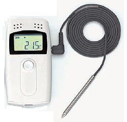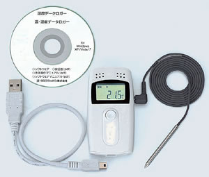 | ■特長 ●簡単操作~ボタンを押すだけ(記録の開始/停止) ●記録中でもリアルタイムデータ確認可能(現在の測定値~記録データ数~最大値~最小値など) 操作ボタンを押すだけで記録中でも確認が可能 ●16000データ記録 インターバル設定:10秒~24時間(1秒刻み) 長時間のデータ収集なら:1時間インターバルで1.8年(666日)、5分インターバルで1.7ヶ月(55日) 空調効果などのスピードチェックなら:10秒インターバルで変化を刻々と記録 ●高精度内部センサー搭載 ●外付けセンサーで用途が拡大 内部温度や液体温度が測定可能な外部センサー標準装備。別売り外部センサーを使用すれば表面温度や空気温度など幅広い温度測定に対応。 ■データの出力