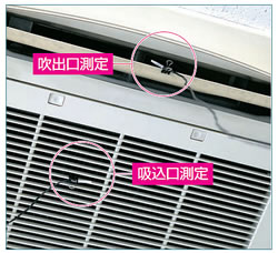 ![]() エアコンの性能診断 吸込口・吹出口にセンサーを取付。 温度差状態をグラフで表示できます。(データロガー2台使用) ※上記にグラフ掲載しています。 ●標準型センサー