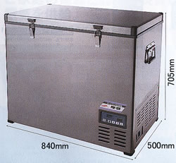 サビや腐食に強いステンレスボディ 収納力抜群、大きな食材もスッキリ収納。 自動車で、オフィスで、ご家庭で DC12V・24VまたはAC100V電源がある所であればどんな場所でも使用可能。 氷、ドライアイス・保冷剤はもう不要。 大容量タイプ:128L |