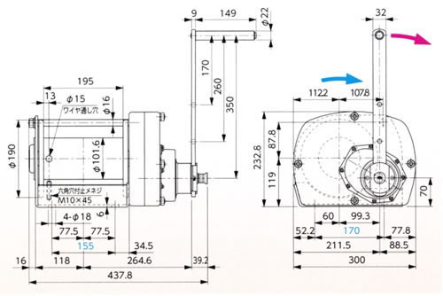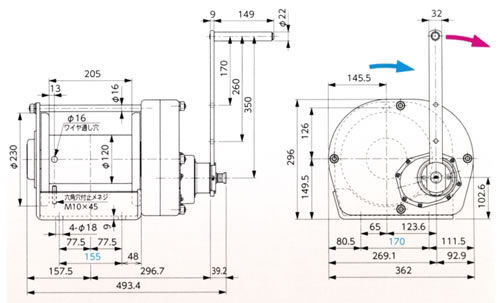 | 溶融亜鉛メッキウインチ/品番 MF7ZW-100NF |