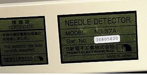 | ■特長 ●検針感度が高い 検出面上11センチの高さで絹針10号を検出。(針寸法33.3L×0.56φmm) ●切り換えスイッチによる6段階の感度調整。 ボタン、ファスナー、ホックなどの金属製附属品の種類、大きさに対して感度を選択し、附属品の影響を調整可能。 ●検出「針」の大小により、警報ブザー音が異なり大小が判別できます。 ●振動につよく動作は安定。 ●作業台に組み込みが可能です。 ■用途 ●婦人服・子供服・紳士服など縫製品の「忘れ針」の検出。 ●アンダーウエアー・パジャマ・ベビーウエアーなどの検針。 ●和服・ボトム製品など「忘れ針」の検針。 ●布地・生地・織物に混入の金属片(鉄製)の検出。 ■仕様