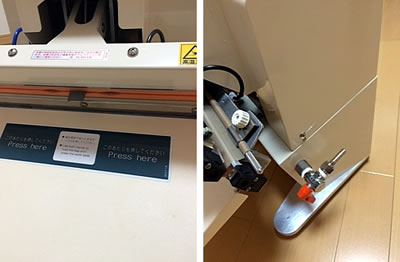 2袋をシール部にセットし、テーブルを押し下げると袋が圧着レバーに挟み込まれます。