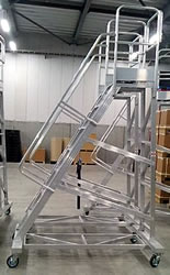 ●大型移動式作業台 ●手すりの高さは900mmタイプ ※階段両手すり天場三方がセットされています。 法規*により、必ず階段両手すり天場三方を付けてお使い下さい(* 労働安全衛生規則) |