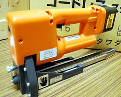 | ■特長 ●バッテリー充電式でどこにでも持ち出しが可能です。 ●とっても軽いスイッチレバーで楽々作動です。 ●1回のバッテリー充電で約900から1800発のステープル打ちが出来ます。 注)ステープル打ちの回数は使用サイズ、使用状況及びダンボールケースにより変わります。またステープル製造メーカーの違いによっても回数に違いがあります。 ●新型クラッチ機構装備で静かな作動音です。 ●2枚のダンボールを完全に接合します。 ■仕様