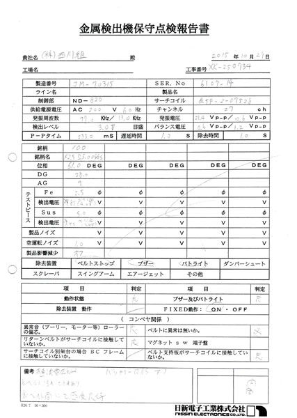 中古日新電子工業金属検出機