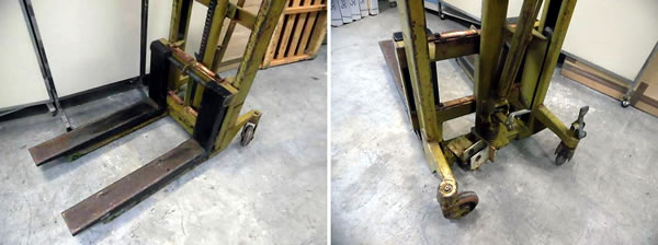 早揚がり装置付 強力な足踏みブレーキ装置 安全性重視の自動積荷チェックバルブ装置内蔵 ポリカーボネード板の採用による広い視界 小型、軽量だから小回り抜群です。 |