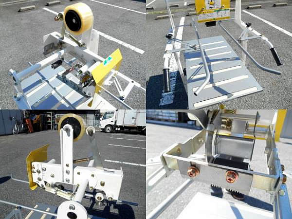 | ■メリット ●ステープルを使わないので、箱内への金具混入の心配がなく、ダンボールの廃棄(リサイクル)も簡単にできます。 ●個人導入しやすい安価タイプ。 ●作業場の2階や軽トラックの荷台などへ、容易に移動でき、お好みの場所で作業できます。 ●電源いらずのため、屋外での作業が可能になりました。 圃場や庭先などで、出荷用途に合わせた作業ができます。 ●貼付台に乗せて押すだけなので、手作業に比べ一人でも素早くきれいに仕上がります。 ■押すだけで簡単・きれいにテープ貼りができます。 ![]() ■操作方法はこんなに簡単