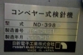 | 中古日新電子コンベア式検針機/品番 ND-398A 製番JR-75137 問い合わせ番号 Z-0731-5 |