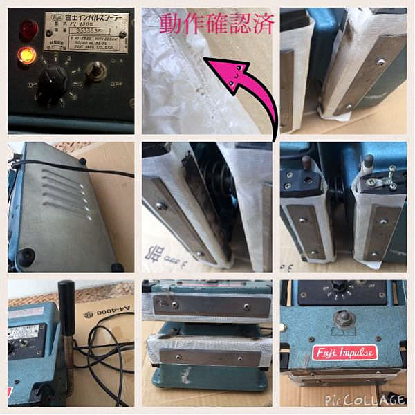手軽なハンドル操作で約100kgの強力なシール圧力が発生し、上下加熱方式による高い温度のヒーター発熱で単体袋から厚手ガゼット袋、お茶袋、コーヒー豆袋、紙などのラミネート袋まで幅広く対応します。 | 中古富士インパルスシーラー茶袋用 品番 FI-130 問い合わせ番号 Z-0747-5 限定1台 |