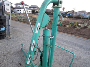 アームはピンの差替により3段階に伸縮。 アームは180°旋回も可能。 上下操作はハンドルレバーにより油圧で作動。 小回り抜群、狭い場所でも作業はOK。 |