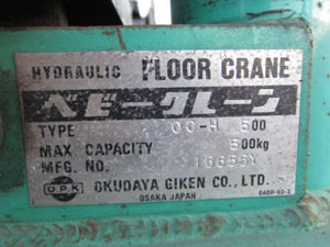 中古をくだ屋技研ベビークレーン 品番 OC-H500 問合せ番号 Z-0757-1 |
