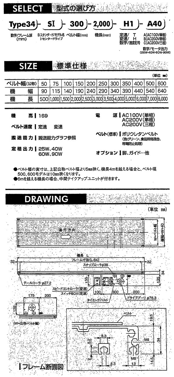 | ミニベルトコンベアー/品番 T34-SI-400-3000-T11-C80 問い合わせ番号 Z-0762-3 |