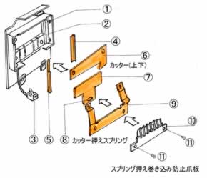 ※2:刃先の向きを間違えるとテープは切れません。 ※3:上下逆に取付けるとテープは切れません。 |