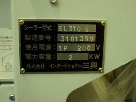 | 中古L型シュリンクシーラー包装機/品番 SL-310G 問い合わせ番号 Z-0764-6 |
