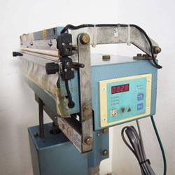 足踏み式特殊製袋用シーラーです。 シール部はフィルムが通過でき、袋端以外の位置でもシールが可能です。角底のフィルムの製袋加工をするのに大変便利です。 標準テーブル・特殊テーブル取付可能 溶断タイプ有 プリンター取付け不可 |
