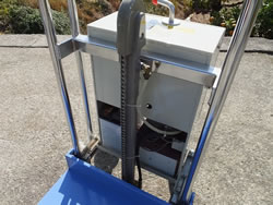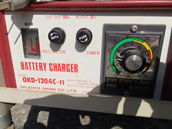 ■使用例 ![]() ■ソフトアップ機構<特許> リフトの上昇スピードを自由にコントロールするのがソフトアップ機構。バッテリー式のすべてに採用。 ワンタッチレバー操作で、上昇下降できますので、女性や高齢者に好評です。 また、デリケートな荷物の取扱いや不安定な荷物に対して最適です。 ![]() ■搭載式バッテリー充電器 バッテリー容量(残量)がひと目でわかるバッテリーメーター。タイマーセットするだけで充電が出来ます。 充電器は搭載型準定電流方式(AC100V)。 ![]() ■寸法図(テーブル式)