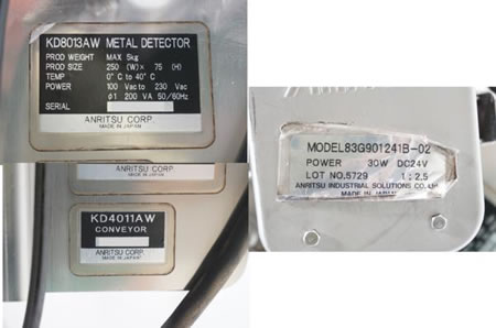 中古アンリツ産機コンベア式金属探知機/品番 KD8013AW