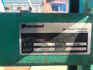 | 中古スギヤス油圧式トラバーリフト/品番 ST50 問い合わせ番号 Z-0781-7 |