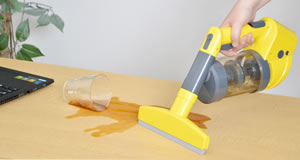 こぼした飲み物も窓ガラス掃除もホコリやチリもこれ1台!!ウェット&ドライ両用の充電式ハンディクリーナー | ハンディー水吸引掃除機 |
