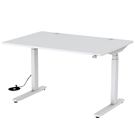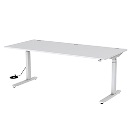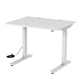 | ■特長 ●電動モーターにより天板位置を上下昇降させることができます。 ●天板位置は任意の位置で停止可能です。 ●天板は高さH630~1280mmまで可動します。 ●昇降の際はスイッチボタンを押し続けることで動作します。危険を発見したり、すぐに停止させたいと思った場合にはボタンから手を放すことで動作が停止します。 ●デスク下降時に障害物を検知し、挟み込みを防止する機能を搭載しています。障害物を感知すると瞬時に運転をやめ、自動的に3cmほど上へ戻ります。 ※この機能はデスク本体および、対象物の破損を未然に防ぐものであり、人体への安全を考慮したものではありません。また全ての条件下において動作を保証するものではありません。 ●天板メラミンは白色を採用しています。オフィス全体を明るくします。 ●ケーブル口が付いているので、きれいに配線ができます。 ●天板のホルムアルデヒド放散基準値はF☆☆☆☆で、ホルムアルデヒドの放出量を軽減しています。 ■タイプ