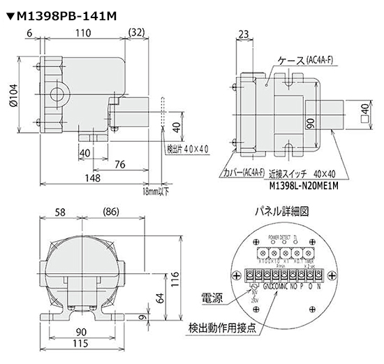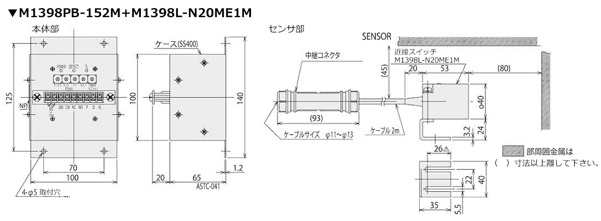 ●盤内取付型回転速度検出器(近接スイッチ別置タイプ)(M1398TC-152M+M1398L-N20ME1M)