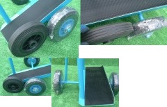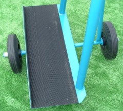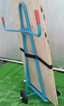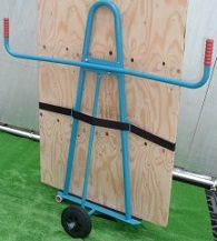 ■特長 ●手で運ぶとパネル面が指紋等で汚れてしまう板状の物の運搬に最適です。 ●素手で持ちにくいステンレス薄板の現場搬入・輸送に最適です。 ●積載後の全高がクリアーできればエレベーター→廊下の運搬も可。 ●湾曲ハンドルの為、横積のバネルでもハンドル部を握っていただけます。 ●積載面にはスベリ止めのゴムマット付 ![]() ●現場廊下でも方向転換のしやすい2輪仕様です。 ●ノーパンクゴムタイヤ採用。 ![]() ■用途 石膏ボード・ステンレス板・スチール板・コンパネ・ケイカル板・壁材・ふすま・障子 □ドアバネル・サッシ・トタン板・波板など。 特に手持ちでは運搬の難しいステンレス板・スチール板・トタン板などの運搬に適しています。 ![]() ![]() ■仕様