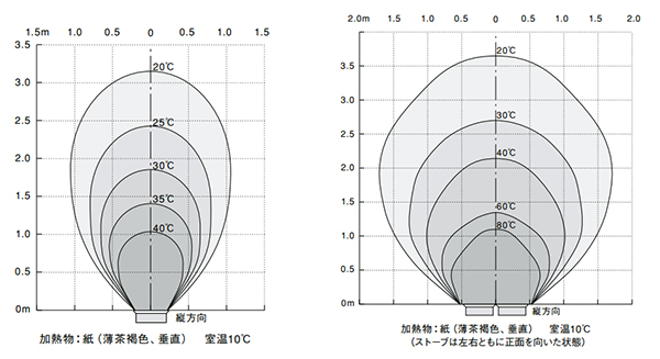 ※使用中のストーブから 2m 以内には、加熱物を置かないでください。