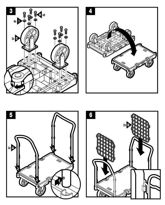 ●この商品はお客様組立品です。 ●パネルは4面とも取り外し可能です。 ●パネルが荷物の落下を防ぎます。 ●側面に紐やフックを取り付けられる4箇所のくぼみがあります。 ●耐薬品・耐水性があります。 |