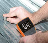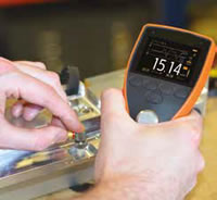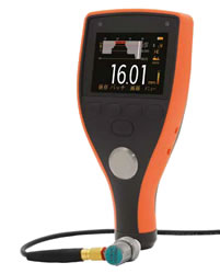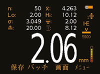 ■概要![]() ![]() ![]() ●簡単操作 操作性を重視して設計されていますので、校正と測定、報告書作成をすばやく簡単に行えます。 ●正確 ±1%以下の測定精度を持っています。 滑らかな面は勿論、粗い面や曲面、塗装面と非塗装面の両方で、正確で繰り返し性の高い測定値が得られます。 安定性インジケーターを見ると、超音波の強度と信頼性がわかります。 ●効率的 測定頻度は、4、8、16Hz(毎秒4、8、16回読み 取り)の中から選択できます。 ●パワフル M1528TG-8EPには、データを保存する機能が搭載されていま す。 最高10万個の読み取り値を、シーケンシャ ル式またはグリッド式で1,000バッチまで英数字の名前を付けて保存 できます。 モバイルアプリと共に使用で きるので、厚さ計からUSBまたはBluetooth接続で、PC、iOS(※)または Androidモバイルデバイスにデータを転送して報告書を作成すること ができます。 ※iPod、iPhone、iPadに対応しています ●頑丈な設計 高い耐久性と耐衝撃性を持つ密閉式本体にはIP54準拠の防塵・防水加 工が施され、液晶画面は傷が付きにくく耐溶剤性です。過酷な環境に も耐えられます。 ■測定モードについて 試料の厚さを正確に測定するための さまざまなモードがあります。 選択できる測定モードは、モデルによって異なりま す。 ●エコー・エコーモード(E-E) エコー・エコーモードは、厚さ0.15~10.15mm(0.006~0.4インチ)の 薄い素材の測定に適しています。 素地の上面から密度が変わるところ(通 常、試料の反対側の面)までの距離を測定します。 ●インターフェイス・エコーモード(I-E) 非常に正確なモードです。試料の上面から密度が変わるところまでの距離を測定します。 ●プラスチックモード(PLAS) 非常に薄いプラスチック膜の測定専用です。 このモードで測定するには、 グラファイトの特別な遅延材が必要です。 ■表示モード 用途に合わせて選択できる表示モードがあります。 ●液晶画面 ![]() カラー液晶画面は耐溶剤性で傷がつきにくく、どの情報を表示するかを指 定することができます。 測定モードには、エコー・エコーモード(E-E)、インターフェイス・エコー(I-E)、プラスチック(PLAS)、の3種類あります。 選択できる測定単位は、使用する測定モードによって選択します。 安定性インジケーターで、超音波の強度と信頼性が示さ れます。 ●スキャンモード ![]() 広い試験面の上で探触子を滑らせながら、16Hzで(毎秒16回)読み取るモ ードです。 試験面をスキャンするに従って、実際の読み取り値と共に、名目値、およびユーザーが指定した制限値と読み取り値との相対的な関係がバーグラフに示されます。 許容範囲外の値が測定されると、赤いLEDが点滅し、警告音が鳴ります。 試験面から探触子を離すと、読み取った厚さの平均値、最大値と最小値が表示されるので、試料全体の均一性を判定するのに便利です。 ●ランチャート ![]() 最後の20個の読み取り値を示す折れ線グラフです。 測定箇所による厚さの変動がわかります。 1回読み取るたびにグラフが更新され、設定した許容範囲外の読み取り値は赤で表示されるので、腐食している可能性のある場所や、本来の使用目的には厚すぎる箇所を見つけるのに便利です。 ●統計データの表示 ![]() 画面に表示する統計値を、読み取り値の数(n)、最大値(Hi)、最小値 (Lo)、平均値(x)、標準偏差(σ)、設定している上限値と下限値、名目値、測定値の変動幅の中から8個まで選択できます。 ●音速モード ![]() 試料に超音波が伝播する速度を測定します。 試料(合金)の均一性を判断 したり、校正用に素地の音速を測定したりするのに適しています。 ●シーケンシャル式とグリッド式のバッチ ![]() 個々の読み取り値をシーケンシャル式またはグリッド式のバッチにまとめて、最高1,000バッチ保存することができます。 バッチには、英数字の名前が付き、測定日時と測定箇所(※)の情報も一緒に保存されます。 バッチに保存した読み取り値、統計値、全読み取り値のグラフを表示するオプションがあります。 Obst※(障害)ソフトキーを使うと、測定不可能であった場所を記録できます。 ※グリッド式バッチのみ ●Bスキャン ![]() 試料の厚さを、時間を横軸にした2次元の断面図で示します。 相対的な深さの分析に適しています。Bスキャン画面のズーム機能を自動に設定することも、特定の場所を拡大表示することもできます。 ●差分モード ![]() 試料の厚さの名目値を設定しておき、読み取り値と共に、名目値との差が表示されるようにするモードです。思ったとおりの肉厚でないところを見つけるのに便利です。 ●バーグラフ ![]() 読み取り値と、最大値(Hi)、最小値(Lo)、平均値(x)の関係を視覚 的に示します。 1回読み取るたびに更新されます。 ●プラスチックモード ![]() 非常に薄いプラスチックの測定専用モードです。 ■タイプ別特長 ●M1528TG-6EP