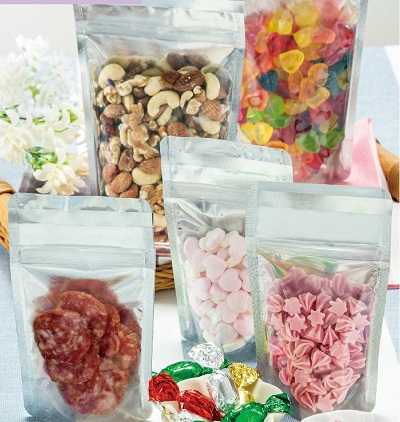 表面は透明、裏面は蒸着のディスプレイ効果に優れたチャック付スタンディング包装です。防湿性に優れ、バリアー性があります。 | チャック付バリアー性スタンド袋(二枚合せタイプ) 品番 M152XP-0910ZSM 価格は下記をご覧下さい |