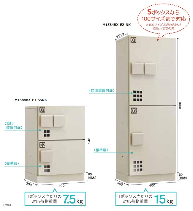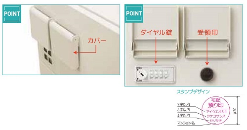 | ■特長 ●電気配線工事不要で年間の保守点検費の削減に貢献 ●既存建物への後付設置も可能 ●防滴仕様なので屋外設置が可能 ![]() ●操作部は防滴対応のカバー付き ●カバーを空けてダイヤル錠操作や、受領印を押す仕様 ※受領印無しの標準扉タイプもご用意 ![]() ●おおよそ最大受け取り荷物サイズ ![]() ■ラインナップ ![]() ■仕様