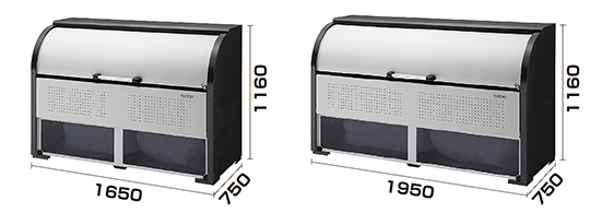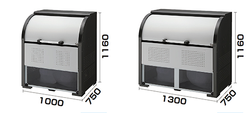 ■特長 ●デッドスペースが少なく、誰でも操作がしやすい回転式上扉。 ●内側からレベル調整が可能。 ●世帯数の少ない集合住宅や店舗などに最適。 ●耐候性に優れたポリカーボネートを使用。前パネル部分から庫内が確認できます。 (色:グレースモーク) ●扉の開閉が静か ロータリーダンパー搭載により開閉音約25%低減。 ロータリーダンパーは10万回の繰り返し開閉試験に合格。 ※回転扉の開閉を1世帯あたり8回/週行うと仮定すると、約20年相当の開閉数になります。 ※耐久年数を保証するものではありません。実際の使用環境により異なります。 ●上部の扉は簡単に開閉操作できる回転動作式扉。回転式なので本体内部に扉が納まり、上部分のスペースを有効活用できます。前扉は前面にスペースがなくても開閉できる機構の上下スライド式扉。 ●南京錠取付け可能 仮ロック機能付きの掛け金で、市販の南京錠の取付けができます。 指定日以外のゴミ捨てやいたずら防止に効果的。(南京錠は付属していません) ※南京錠つる径φ7.5以下 ●ゴミが隅に溜りにくい 塵溜り防止板によりゴミが隅に溜りにくい構造です。 ●お掃除カンタン 底板は取外しが可能です。底板を取外して底板や地面の掃除が簡単にできます。 ■外寸図