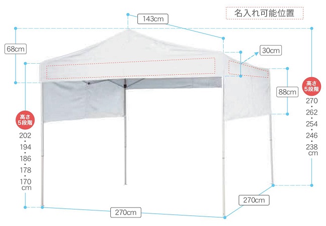 | ■特長 半横幕付、切妻屋根の個性派モデル。天幕脱着が不要のため設営・撤収が手軽るです。 切妻テントは、複数台並べて設置した場合に、広い屋根下スペースを確保できるだけでなく、向きによって見た目の印象に変化が生まれるという特徴があります。 ※オプションとして、風対策用のウエイトがございます。 ●設置例 ![]() ●天幕形状 ![]() ●ローラーキャリーバッグ ![]() ■外寸図 ![]() ■仕様
