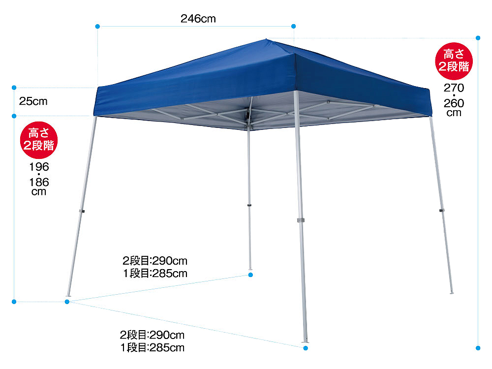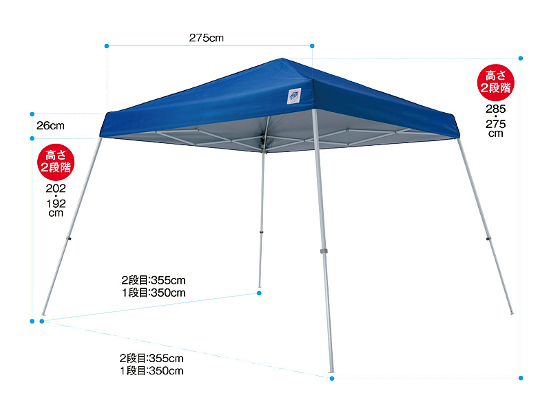 ■特長 ●わずか1分!!簡単設置・撤収 設営は大人2名でゆっくり広げるだけ。パイプの組立作業は無し。初めての使用時以外は設置時間全体で1分。天幕を装着してからの1分ではありません。 ●天幕をつけたままたためる! 設営時も収納時も天幕の着脱や畳んだりの手間がいりません!天幕を付けたままで良い設計で作られています。実は天幕を着脱するなどはございません。 ●天幕を傷つけない設計 テントの開閉時に天幕生地がひっかかたり、食い込んだりしないよう、最適なトラス間隔で設計しました。フレームとの間隔が無いテントは天幕が破れてしまいます。 ●名入れやロゴプリント可能 学校名団体名などの名入れはもちろん、ロゴマークやロゴテキストをフルカラーの印刷も可能。カッティングシートによるプリントなので、にじみやはみだしが無く綺麗に仕上がります。 ●価格を抑えたオプション品 ビスタシリーズの横幕はブルーシートのような手軽で扱いやすい質感。かんたんウエイトは水を使用する手軽なおもりです。ローコストで風対策、日除けができます。 ●アフターサービスも万全! 当テントは、末永く使って頂く為に、もしもの時のテント有償修理はもちろん、パーツを注文してご自身で修理可能です。 ■仕様