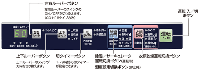 スピーディな衣類乾燥、広いリビングの除湿におすすめの大能力タイプ。 |