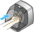 センサー感知で手指消毒用アルコールを噴射・吐出します。 薬液ボトルを設置するだけで、簡単・清潔にお使いいただけます。 |