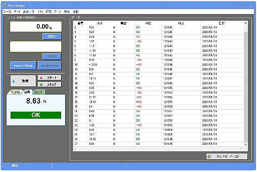 ■特長![]() ■使用用途 ![]() ■付属ソフトウェア ●付属のUSBケーブルで簡単にパソコンへデータを取り込むことができます。 ・計測データを簡単に取り込み可能 ・取得データの最大値、最小値、平均値参照 ・CSV 形式でのデータ保存可能 ・フォースゲージ機能設定 ![]() ●動作環境