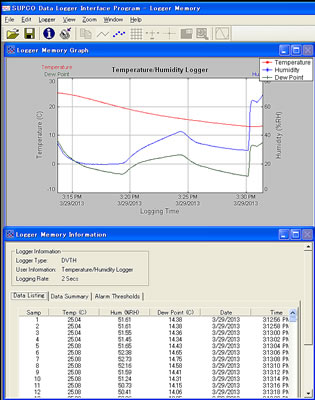 ●温度と湿度をグラフ表示 ●数値表示に切換え可能 ●メモリー数:43,344 (1チャンネル21,672) ●測定範囲:-10~+65℃/0~99%RH ●高い精度:±0.5℃/±2%RH(40~60%RH) ●素早いデータのダウンロード ●指定温度・湿度アラーム表示機能付き |